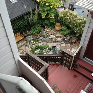Ariel is dog sitting for a guy whose otherwise unremarkable apartment building has this cool backyard garden.