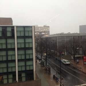 Snowy day, first of the season. View from the Yale School of Architecture down Chapel Street.