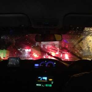 Stuck in traffic in a taxi for an hour, under pouring rain. Precious moment of quintessential Jakarta life.