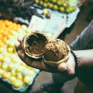 Wood apple, or Limonia acidissima. A fruit of fragrant tones, rich earthy flavour and muddy palate. Not for sensitive tastebuds.
