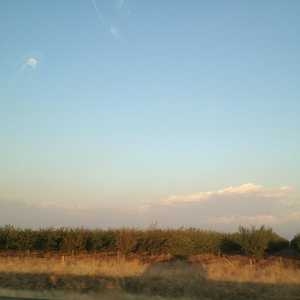Driving to Canada. Day 1. Our car shadow and golden hour dusk.