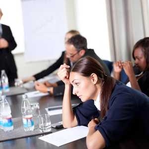 Sitting in meetings, bored, leads to website browsing, mind wandering, and the inability to suppress yawns.