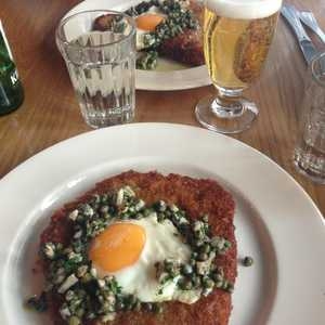 Lunch with Craig near the Quay... we're trying to decide if vegies are needed.