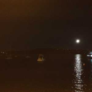 6am. The moon lights the way for the Manly ferry to push into the wind to circular quay.