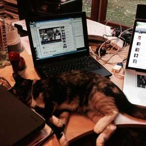 My writer's desk is full. And yet Frankie has found sufficient space to sleep. Guess I'll clear space elsewhere.