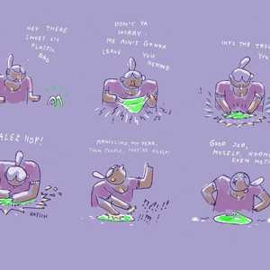 First, he pulls my hairy legs' hair. Then, he does *this*.