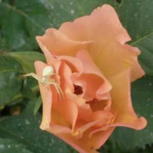 The pas — this spider was hiding from the song birds in the chokecherry tree. It was also cleaning up the aphids that were on the roses.