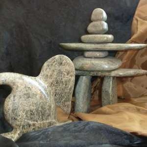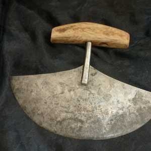 The ulu knife, traditionally the handle is made from caribou antler or walrus ivory. The blade was made of slate, until metal was introduced during the Fur Trade.
