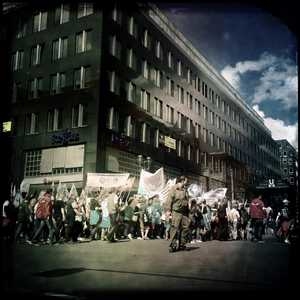 we had been told by the tour guide that there was a possibility of running into a protest by the local skin head chapter. this being berlin, it was noteworthy.