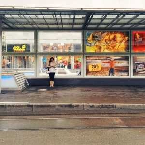 Waiting for the tram, on the phone.
