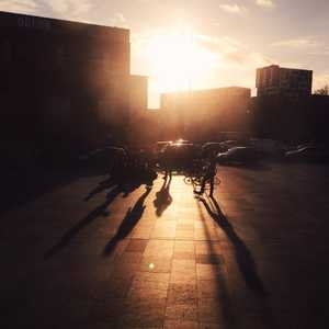 Skaters, shadows, and sunlight.