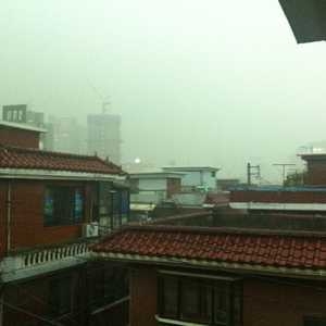 Summer storm at its best. 1pm, everything dark but yellow from the distant invisible sunlight.