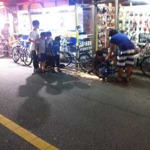 Fixing a kids’ bike, right on the street.