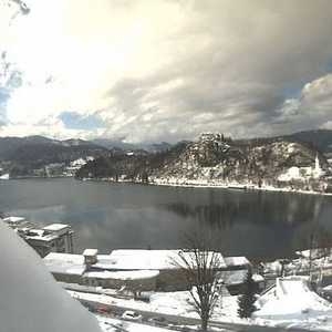 After a week, the snow covering the Bled webcam has cleared to give a stunning view of the lake, castle and church.