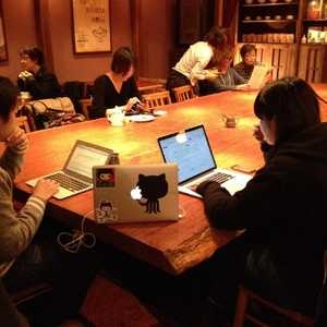 Today's office, Starbucks Hiroo. Expats and college age women.