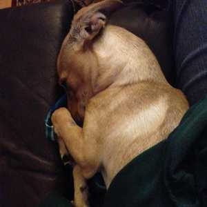 Snuggling with Brigid, the new puppy. She doesn't mind when I curse about Discrete Math.