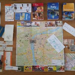 Costa mesa — Leftover coins (rupees, koruna, forint, yen), shampoo packets, maps & stubs, magnets, boarding passes and tickets to attractions, napkins from fantastic restaurants, Tina’s name sewn on a paper. ...