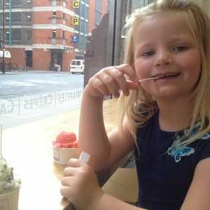 She's not enjoying the strawberry but doesn't want to say."Want to try mine?" I ask. Big grin. Love her.