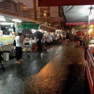 A street fair in a rainy day