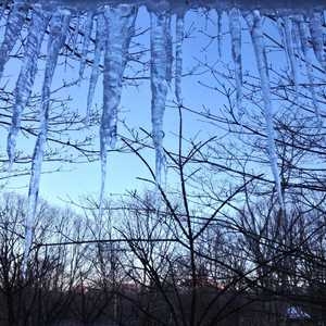 Naganohara — These are the icicles I was watching from my bed just now, dyed blue by the dusk sky, drip drip dropping, then falling all at once with a crash.