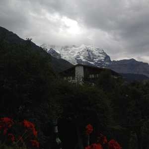 Lauterbrunnen — It looks like some snow has melted, revealing a glacier. This is the first cloudy day all week. There has been little rain.