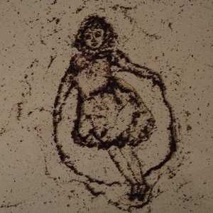 This little girl is made of coffee, on a kitchen table. Coffee is the secret of her energy!