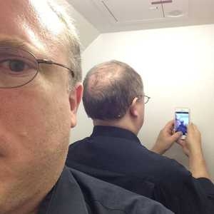 I amuse myself in an airport lavatory in a safe-for-work manner.