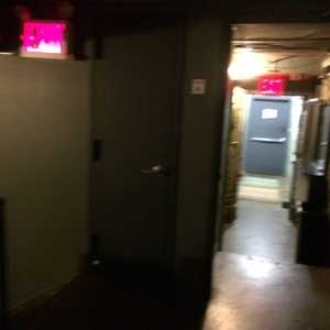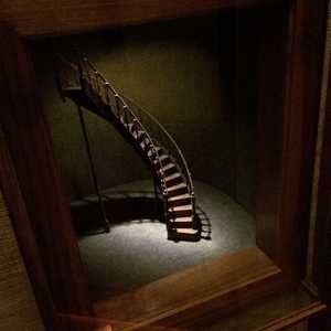 Descending a staircase while looking at a staircase at the Museum of Jurassic Technology