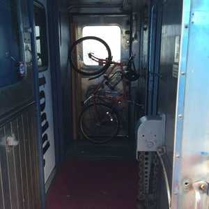On the way to a restroom at a restaurant, I found two train cars converted into offices.