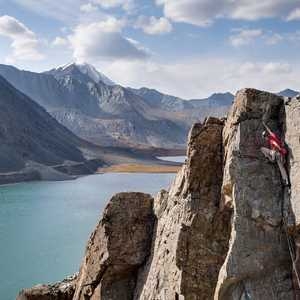 Kosh-agachsky district — Clay Conlon on a new route in the South Chuysky range, Altai Mountains, Siberia, Russia. Myself and three others were in this valley for two weeks with the aim of making a number of first British / ...