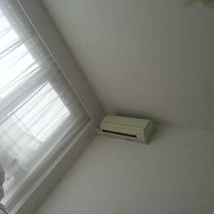 Cloudy morning light through lace curtains in the new apartment.