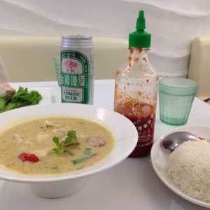 Green curry at Savoy on Zhongxiao East Road... Hung Foy Sriracha sauce knows no borders.