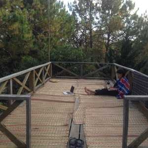 Today's office is up in the pines. Popup studio set up includes installing a satellite dish, and daily deliveries from the local village bakery, plus fresh fruit, yoghurt and milk.