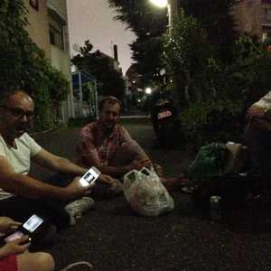 Sidewalk picnic at Aoyama Danchi