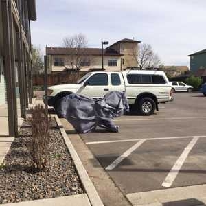 This is what a bicycle looks like when flipped upside down and wrapped up in furniture pads.