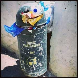 Fun faced dustbin in Chios Island Greece - bit like R2D2 :-)