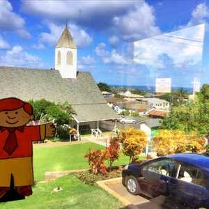 A third of an hour past five, waiting for Pono at the Waiola Church yard in Lahaina town...