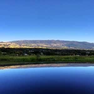 Haleakala's shadow across the valley. KSM campus. Half past 7.