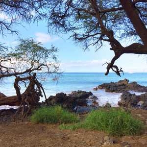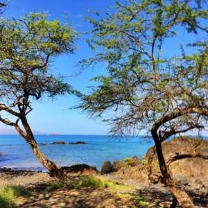 Thorny kiawe trees, lava rock tongues leaching out into the ineffable ocean, Kaho'olawe Island in the distance / this day.