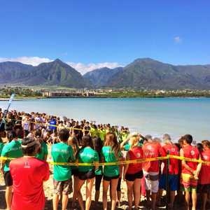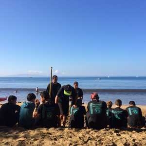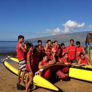 Kulani's JV Mixed crew warming up; penultimate regatta of the paddling season, in Kihei.