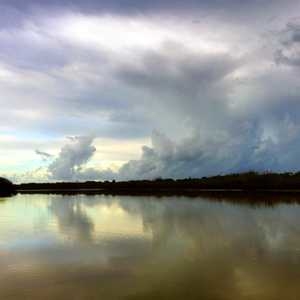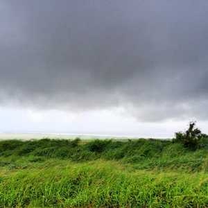 After this early morning's downpour—clearing skies, dappling sunshine.