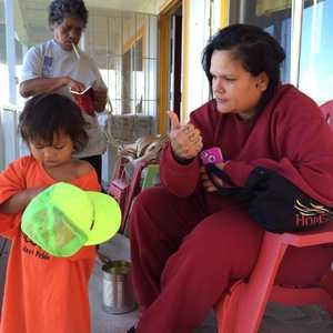 Three generations of Hawaiians. Early morning tableau out on the lanai, of people I have come to call family.