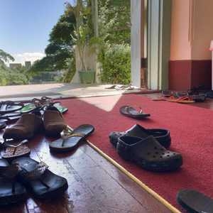 Typical Hawaiian church... folks barefoot in the sanctuary. Including the Kahu, of course.