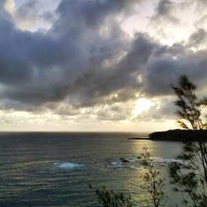 Minutes before sunrise, 5:53 a.m., Maliko gulch and bay, Hana coast.