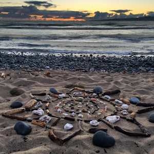 Where I met sunrise this morning at Waiehu Beach I found this overnight mandala alone, totemic, intimating impermanence.