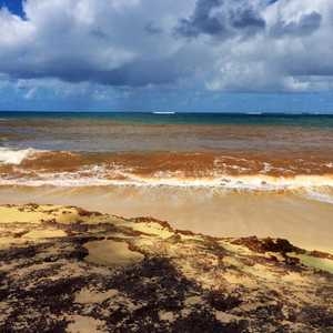 The small bay across from Pa'ia Church is, this morning, a troubled, turbid red.