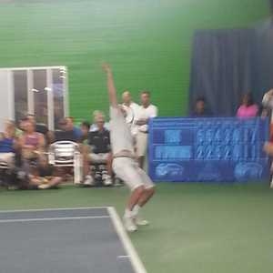 John McEnroe serving vs Jim Courier at Sportime WTT match.
