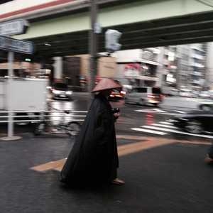 Going home today I bumped into this procession of monks walking in the rain amongst the high buildings and under the elevated highways.