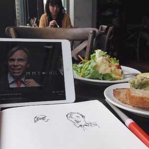 The bliss of doing freelance illustration jobs is that you can do it while you're enjoying a nice lunch.