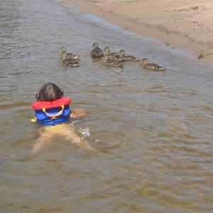Wanted to go swimming, she made a few new friends and all they had to say was quack, quack, quack!